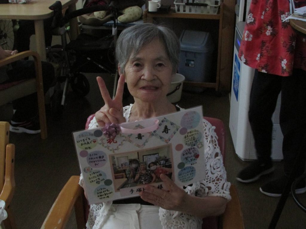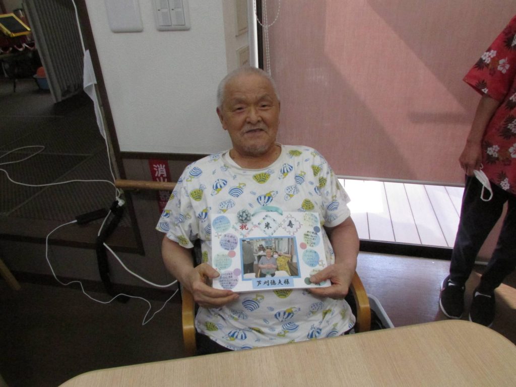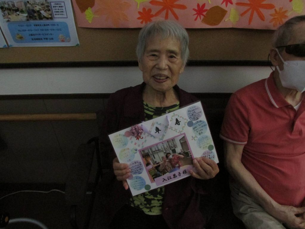 9月13日~14日はデイサービスセンター内で敬老会を開催しました。 「敬老の日」は、「多年にわたり社会につくしてきた老人を敬愛し、長寿を祝う」という日。 喜寿、米寿、卒寿のご利用者様に、職員からのささやかなプレゼントを贈らせていただきました。 おやつの時間は、日頃の感謝を込め、いつもより少し豪華なおやつをご準備させていただきました。 皆様とても美味しそうに召し上がっておられました。 いつまでも皆様の素敵な笑顔を見せてくださいね!! HOMEブログ敬老会~上籠谷デイサービスセンター~