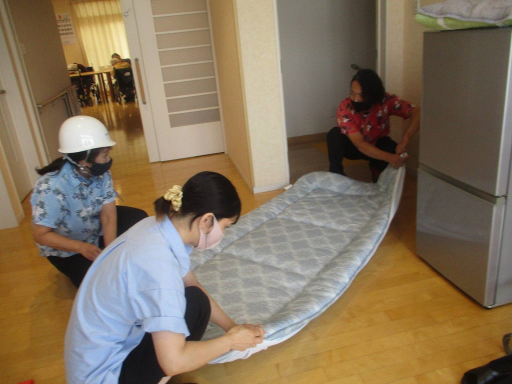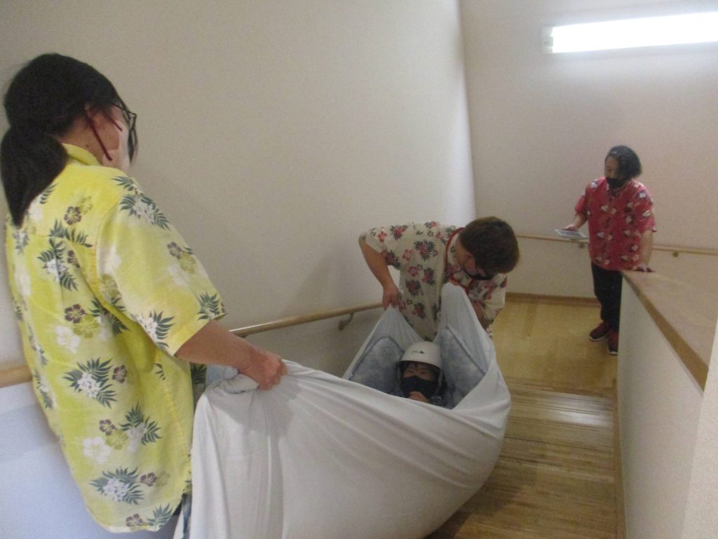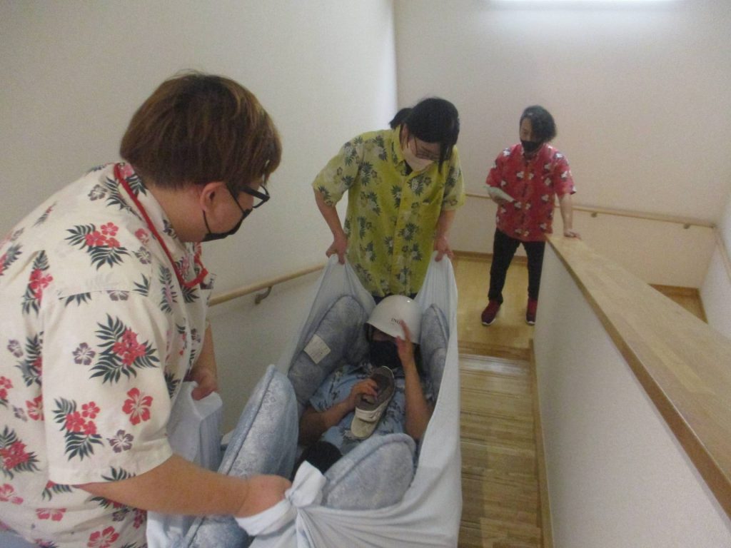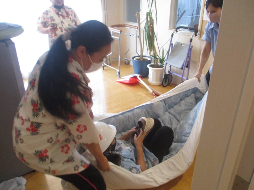 マットレスで誘導をするか、車椅子で誘導をするか、入居者様によって避難誘導方法を変えることも重要であることを学びました。